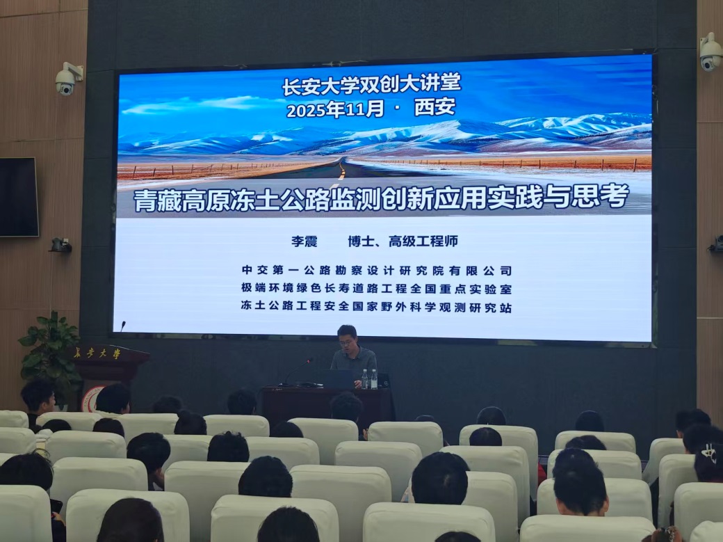 2025年11月3日下午14:00,长安大学双创大讲堂(第36讲)在渭水校区服务大厅二层第二报告厅顺利举行。本次讲座由教务处、创新创业学院联合地测学院共同主办,以“青藏高原冻土公路监测创新应用实践与思考”为主题,特邀中交第一公路勘察设计研究院有限公司工程信息感知与病害诊治中心副总工、高级工程师李震博士担任主讲嘉宾。地测学院相关专业学生及校内其他对中国国际大学生创新大赛、大学生创新训练计划项目感兴趣的师生积极参与,...
