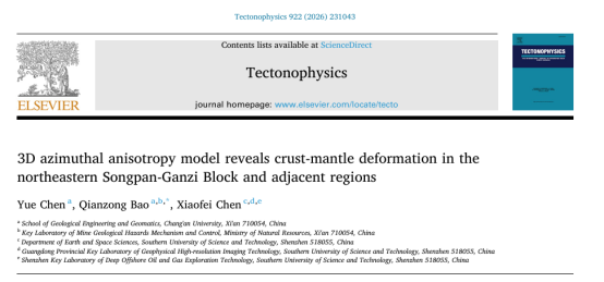 近日,我校地球物理学在读博士生陈月为第一作者、包乾宗教授为通讯作者,南方科技大学陈晓非院士为共同作者,在国际知名地球物理学期刊《Tectonophysics》(中科院2区)发表题为“3D azimuthal anisotropy model reveals crust-mantle deformation in the northeastern Songpan-Ganzi Block and adjacent regions”的科研成果。 松潘-甘孜东北部及邻区位于青藏高原、华南板块与鄂尔多斯地块的构造交汇处(图1)。新生代以来,印度板块与欧亚板块的持续碰撞引发了青藏高原的隆升与扩展。...
