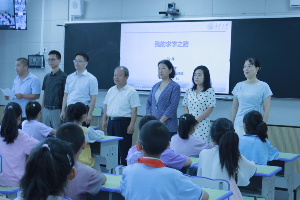 随后,长安大学沈伟副教授面向四年级全体学生,以《我的求学之路》为题,分享自己25年的个人成长故事与求学心得。“Where there is a will,there is a way”(有志者,事竟成)沈老师朴实的话语在孩子们心中播下探索科学的种子。