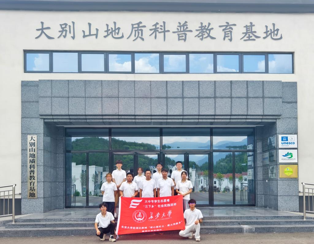 为深入贯彻习近平总书记“绿水青山就是金山银山”的重要理念,探寻大别山地区地质资源保护与乡村发展的融合路径,长安大学“岩心鉴红土・薪火传麻乡”暑期社会实践队赴张家畈镇黄市坳村开展参观学习和实践调研活动,村支书余朝晖带领实践队员参观大别山地质科普教育基地并作调研指导。