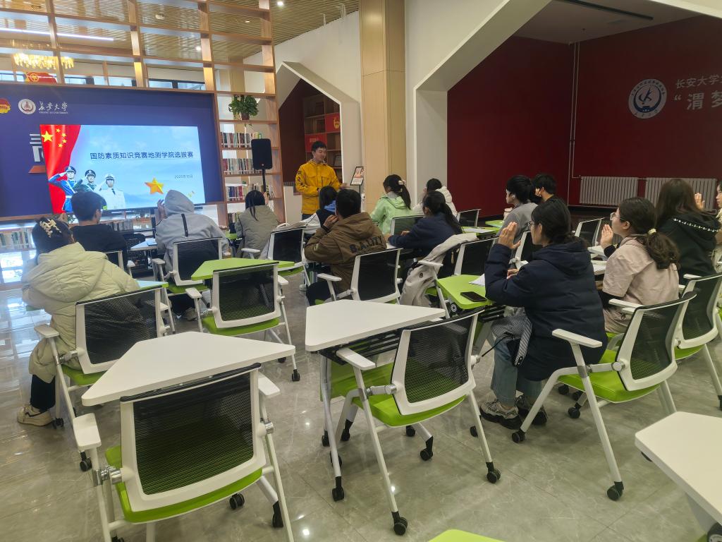 为普及国防知识,增强学生国防观念,激发爱国热情,并选拔优秀选手参加长安大学第十届国防知识素质竞赛,10月27日中午,地质工程与测绘学院在西区鸿渐园学生社区青年会客厅成功举办了国防知识竞赛院内选拔赛。