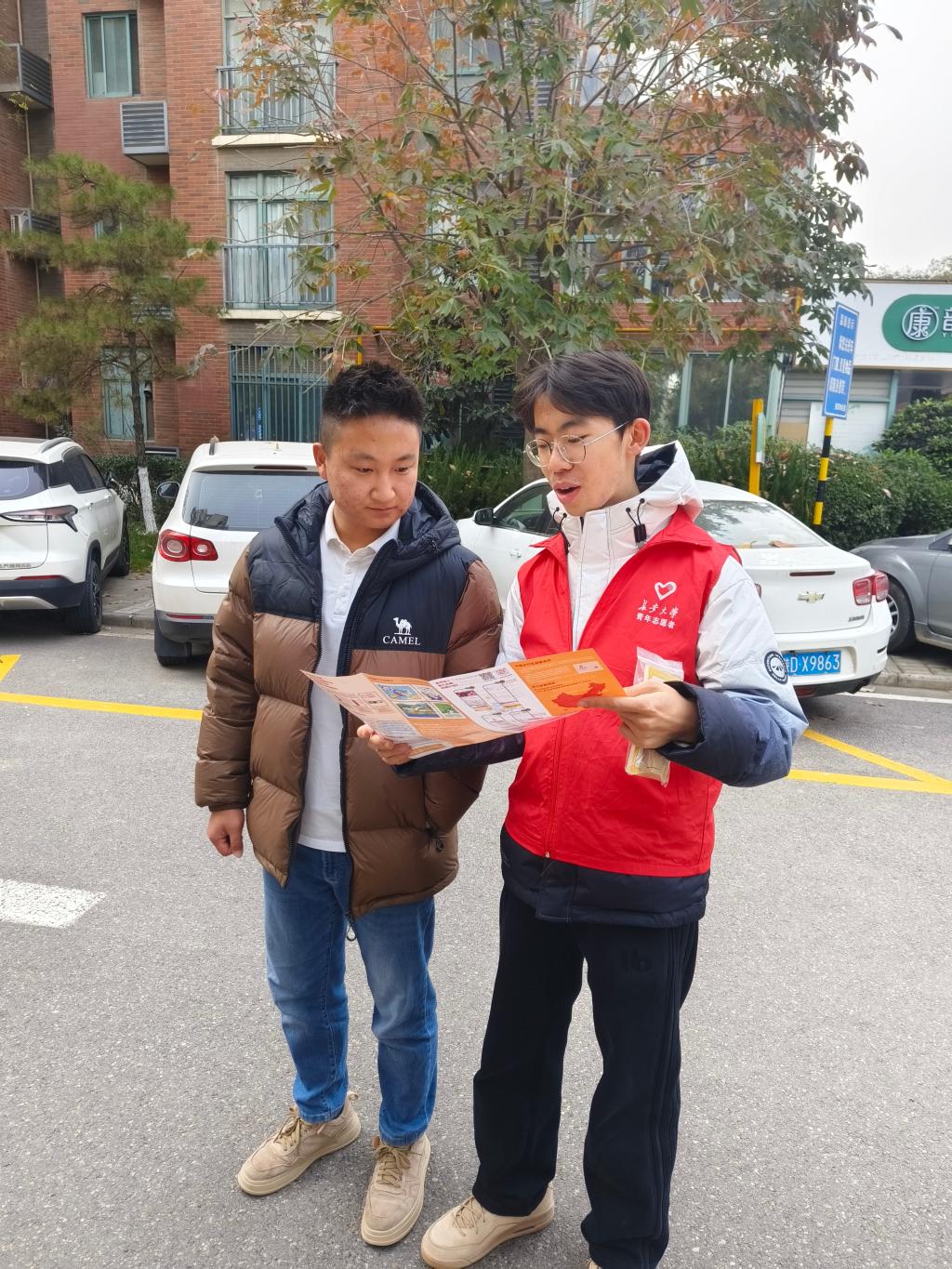 寒冬凛冽,却难凉滚烫善意;朔风萧萧,亦吹不散炽热爱心。为助力贫困地区儿童全面发展,汇聚社会爱心力量,2025年11月22日下午,地测学院青年志愿者服务队于白桦林居及周边地区开启了“善行一百”月捐公益劝募活动,以青春热忱传递温暖,为远方孩童托起成长希望。