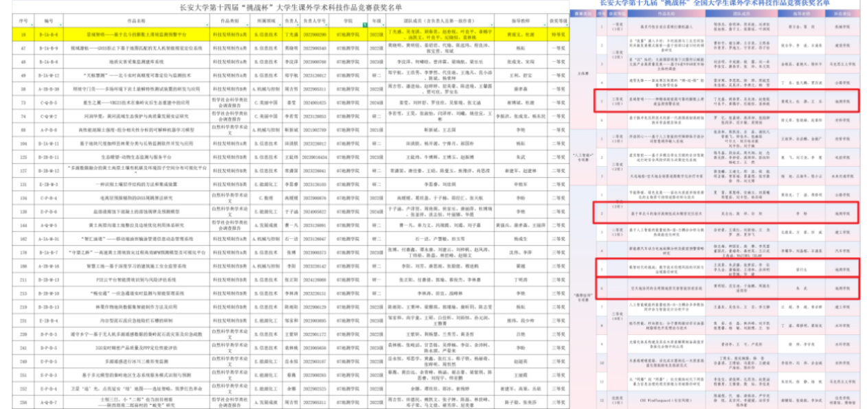 图2“挑战杯”课赛地测学院获奖名单
