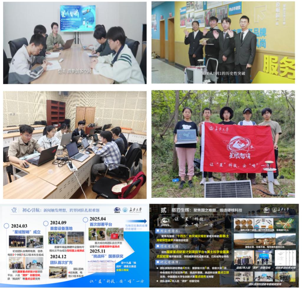 成员实现学生工作、志愿服务与文体活动全员参与。核心成员接任学院科协执行主席,志愿活动累计时长超1000小时……从实验室到边坡现场,从技术研发到防灾宣传,团队用行动书写着“顶天立地”的青春答卷,用成果回应着“星域智哨”的使命担当。