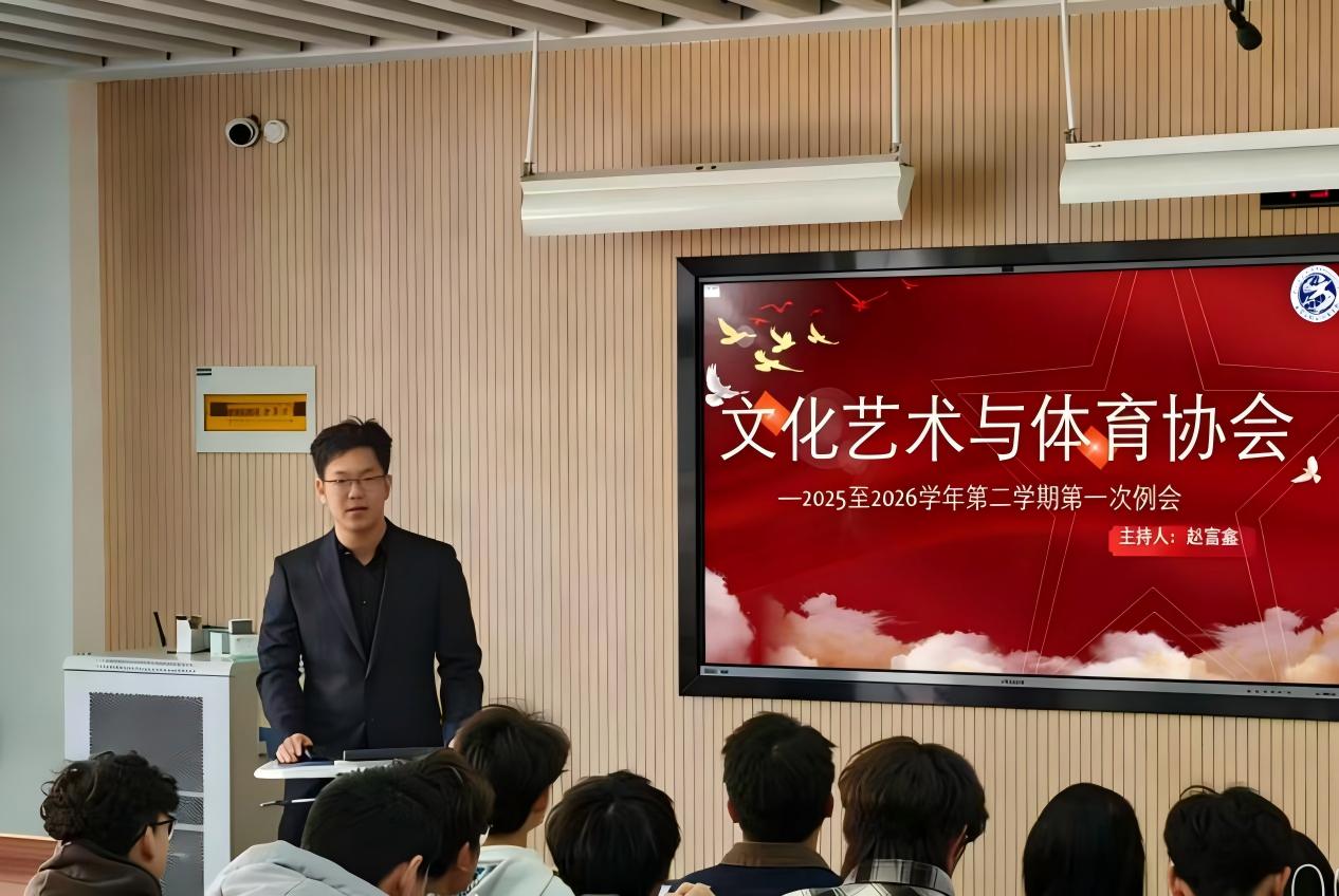 为提升校园文体活动质量,优化组织效能,打造积极向上、团结协作的工作氛围,2026年3月9日,地测学院文化艺术与体育协会于WX2304教室召开2025-2026学年第二学期首次全体会议。协会指导老师史杨季,主席团潘春霞、肖昱昊、田媛及各部门成员出席会议,共同谋划新学期文体工作。