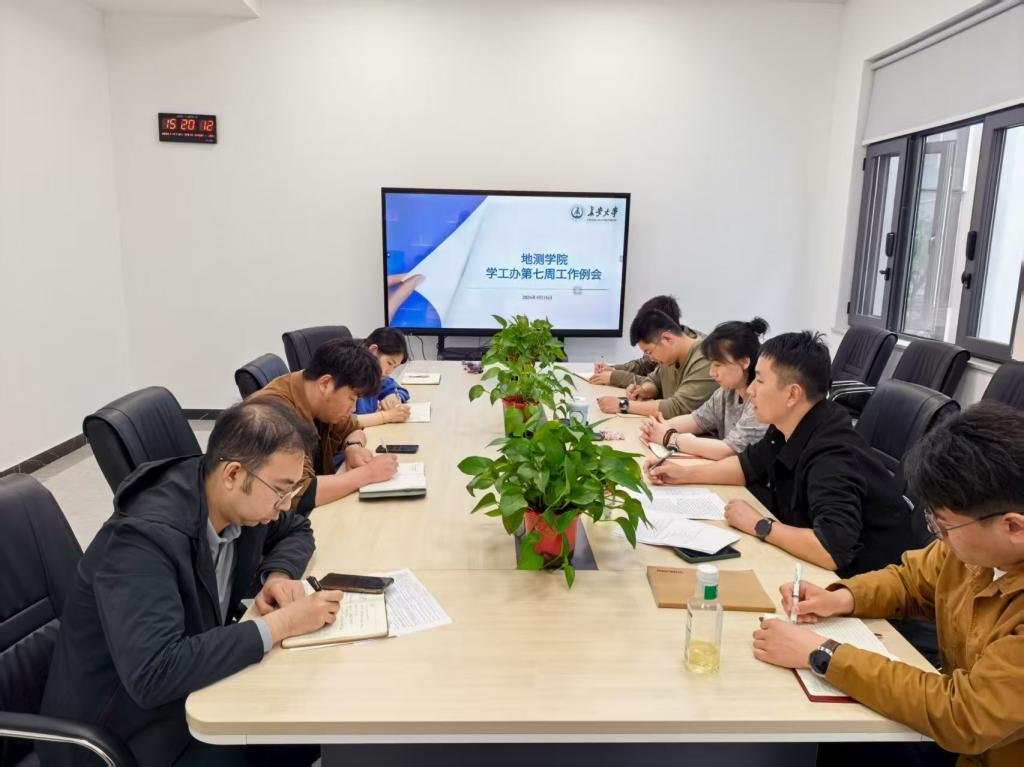 为深入贯彻落实学校关于学生工作的部署要求,精准谋划下一阶段重点任务,地测学院学生工作办公室于4月15日下午在北校区鸿翔园社区会议室召开第七周学生工作例会,学院党委副书记潘迎和学生工作办公室全体辅导员参会。