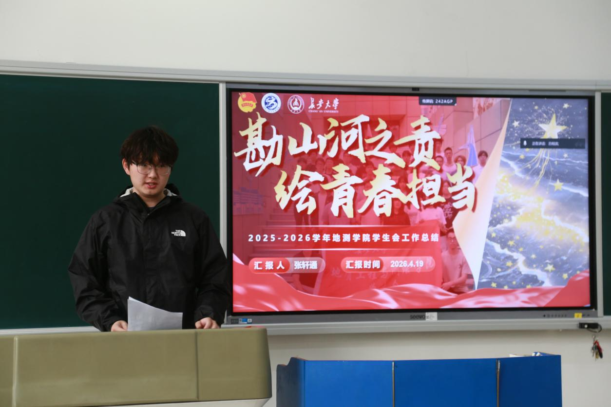 为深入贯彻新时代立德树人要求、强化学院学生干部组织工作能力、提升学院学生共建水平和保障学院学生工作高质量发展,4月19日上午,地测学院2026年学生干部能力促进大会在WH2108教室顺利召开。参加此次会议的有地测学院团委书记杨东民、团委副书记杨海城、团委副书记史杨季和2024级辅导员刘永旭。学院各团学组织及学生社团的主席团成员和部门负责人共同参加。