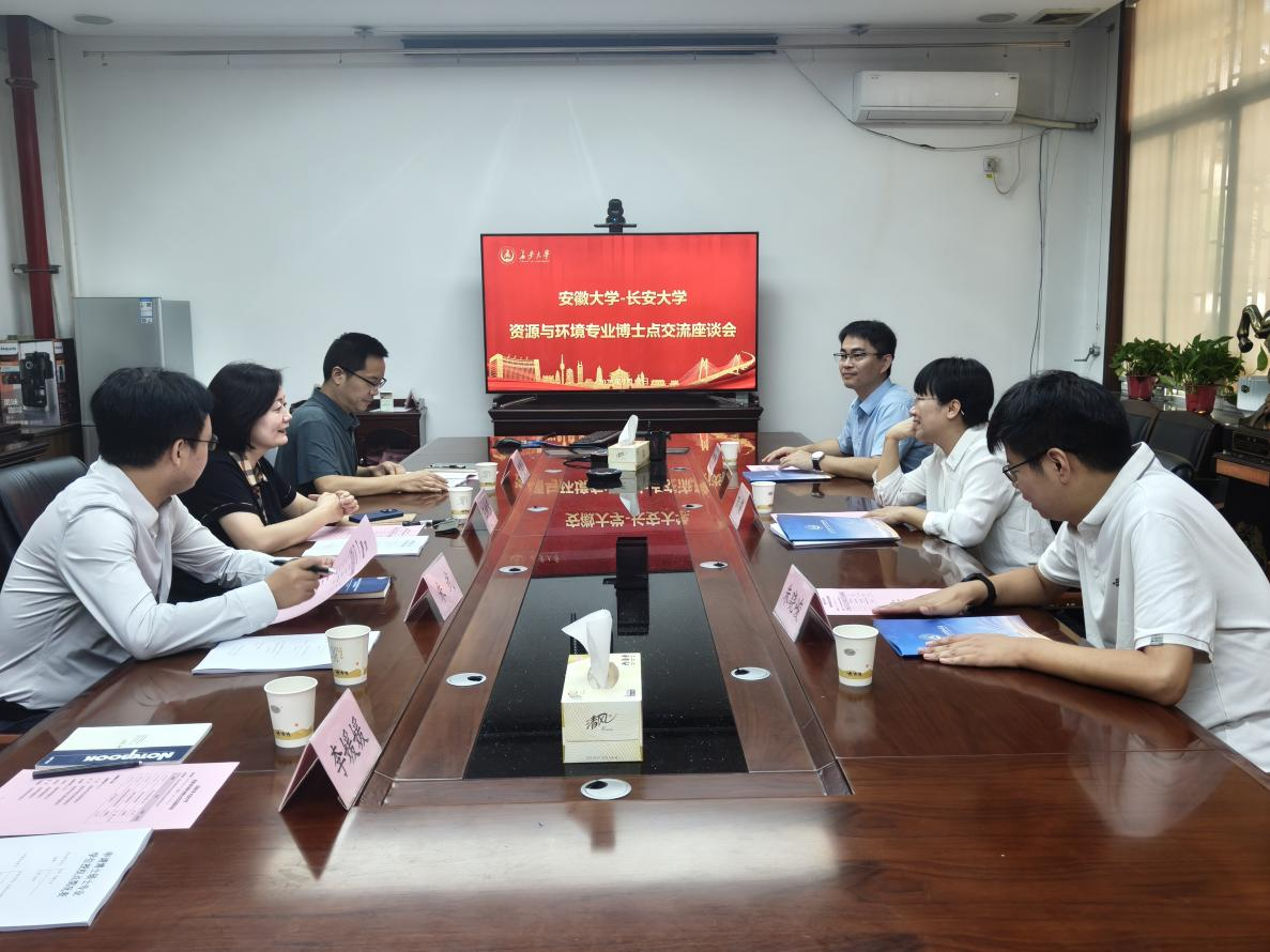 2025年9月15日上午9:30-11:30,安徽大学与长安大学资源与环境专业博士点交流座谈会在长安大学南校区东院(雁塔校区)地测学院会议室成功召开。安徽大学资源与环境工程学院院长万霞、副院长胡洪、朱晓峻一行3人专程来访,长安大学地测学院党委书记王树莹、副院长申艳军、副院长朱武、学科秘书李媛媛参会。双方围绕资源与环境专业博士点建设经验核心议题深入研讨,共同为学科发展拓宽道路。