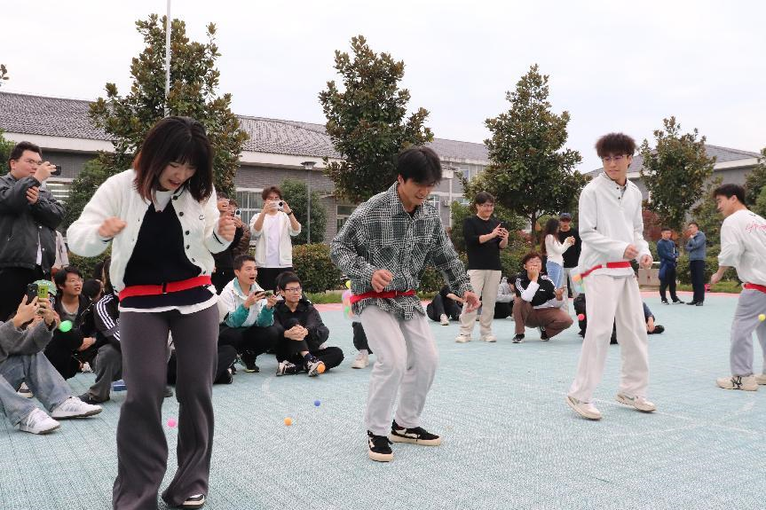 拔河比赛的结束后,全体师生在基地操场进行了趣味游戏。各班组成参赛队伍,进行模拟“母鸡下单”的趣味任务,既考验团队的协作效率,又为实习生活注入了别样乐趣。工程地质 101 班的同学们反应迅速、身体协调,成功摘得该项目冠军。赛场上,同学们尽情释放活力,爽朗的笑声回荡在基地上空,不仅缓解了野外实习的紧张压力,更让大家在趣味互动中加深了彼此的友谊。