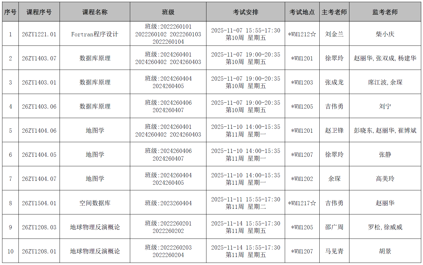 本学期第10周前结课的地测学院开课课程期末考试监考安排已发布,监考安排学院已经在本科教务系统中填报完成(监考教师可同时在本科教务系统中查看监考安排)。为确保考试平稳顺利进行,学院已将相关监考工作安排表上传到附件中,请各位老师及时下载查阅,并按时完成监考工作。